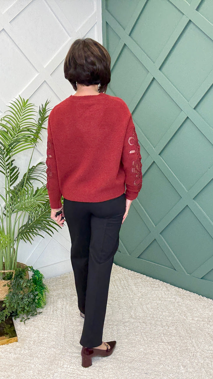 Long Sleeves with a Twist – Put-on sleeve design with see-through floral detailing, giving a soft, feminine edge.