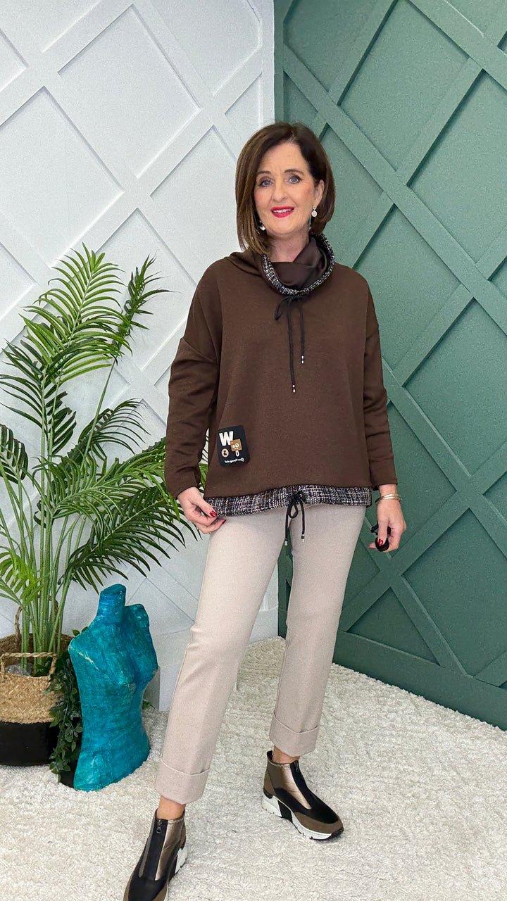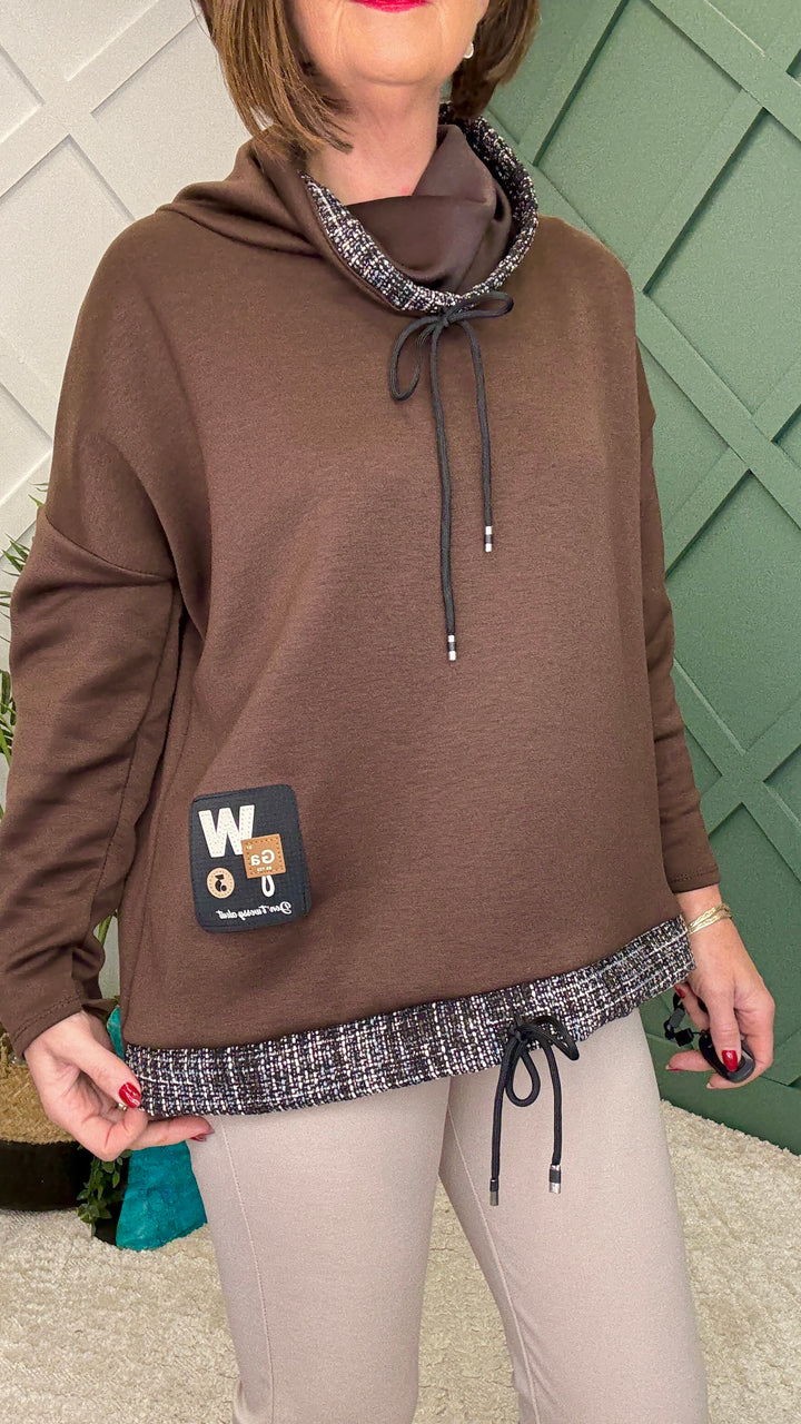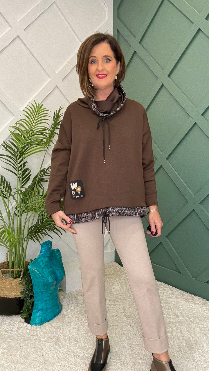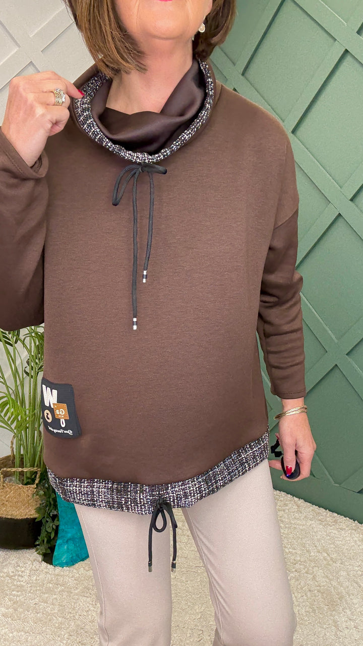 -Dips slightly longer at the back and has pull tie detail on the hemline
