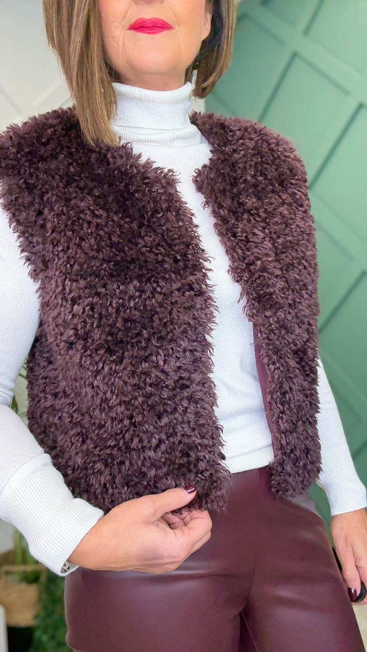 Add a touch of cozy chic to your look with this faux-fur vest from Yest. Designed in a rich burgundy shade, it features a soft, fluffy texture with a smooth lining for all-day comfort. Perfect for layering over knitwear, blouses, or dresses, this versatile piece brings warmth and style to your wardrobe without the bulk of a jacket.