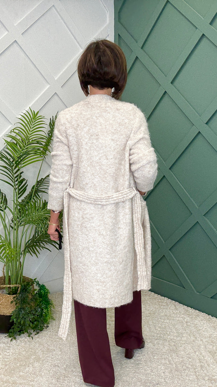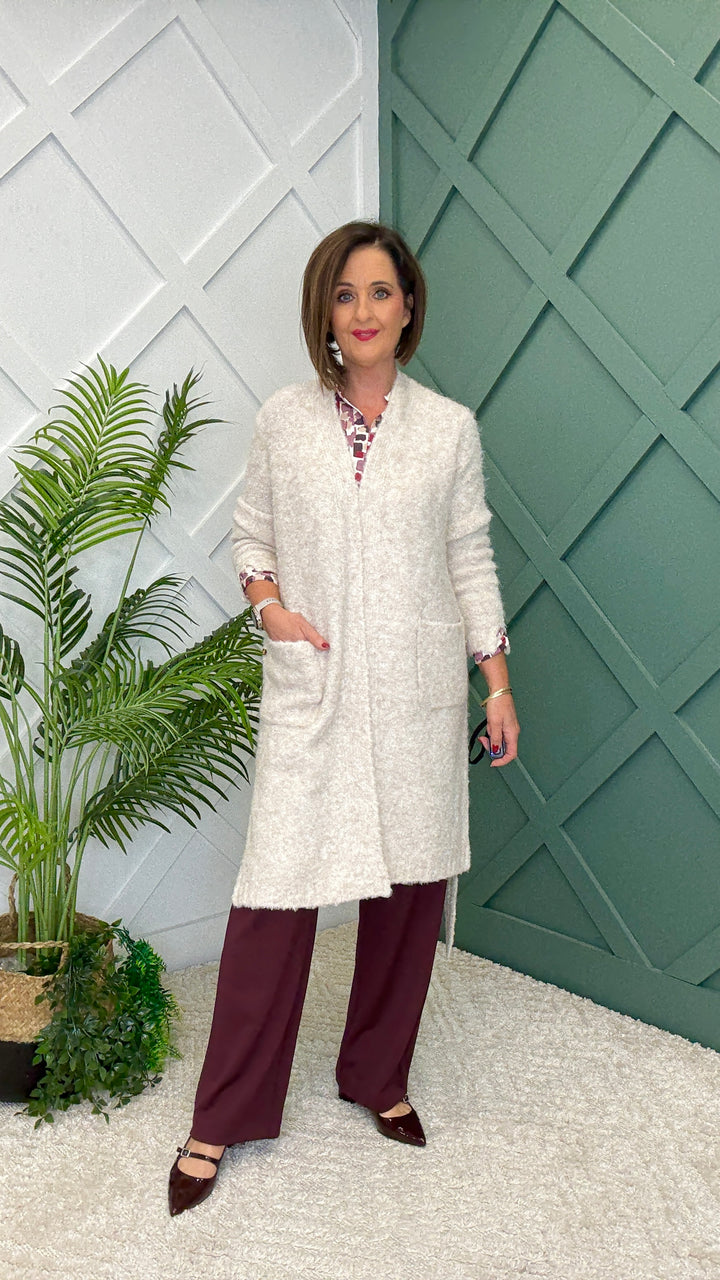 This cardi is true to size fit and is not at all itchy or scratchy.