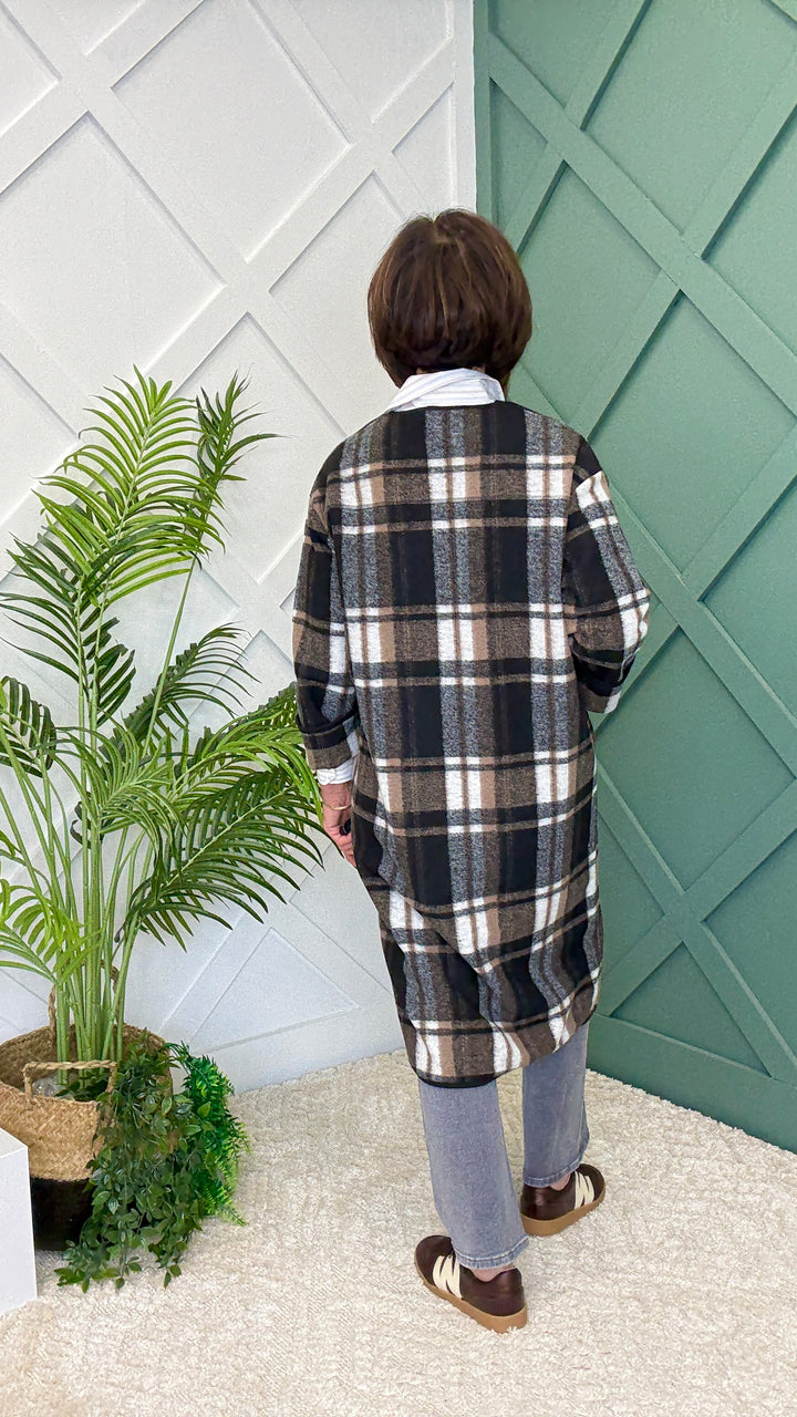 Step out in timeless style with the Clover Coat — a chic outerwear essential for the colder months ❄️. Featuring a round neckline and black clip-button closure ⚫, this longline coat falls past the knee 📏 for extra warmth and elegance.