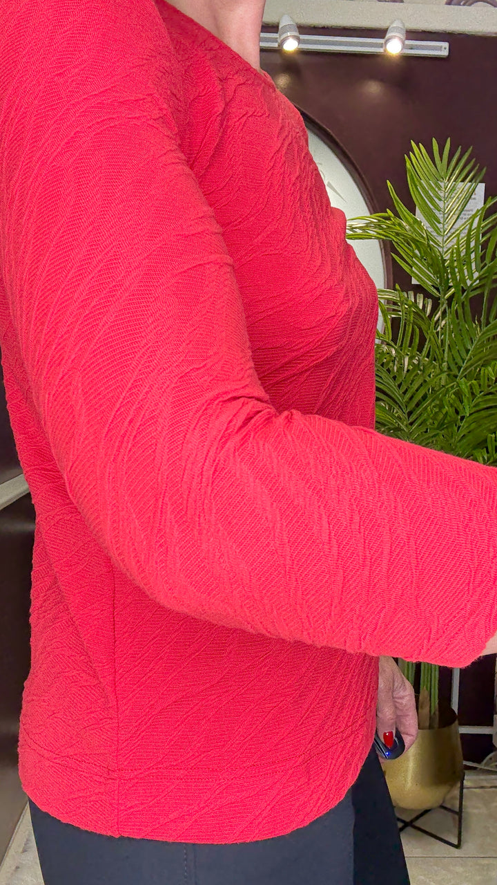 Meet your new wardrobe essential 🤍. The Cora Top features a classic round neckline and long sleeves 👕, making it the perfect layering piece or stand-alone style. Its subtle embossed line pattern adds a touch of sophistication ✨ while the creamy white base keeps it timeless and versatile.
