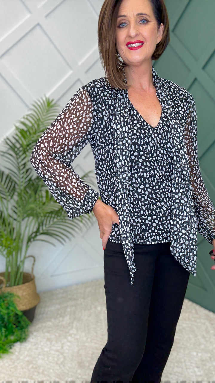 Effortlessly chic and perfectly versatile, our Dalmata Long Sleeve Top is the statement piece your wardrobe needs.