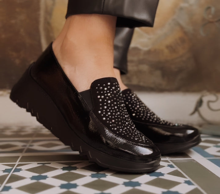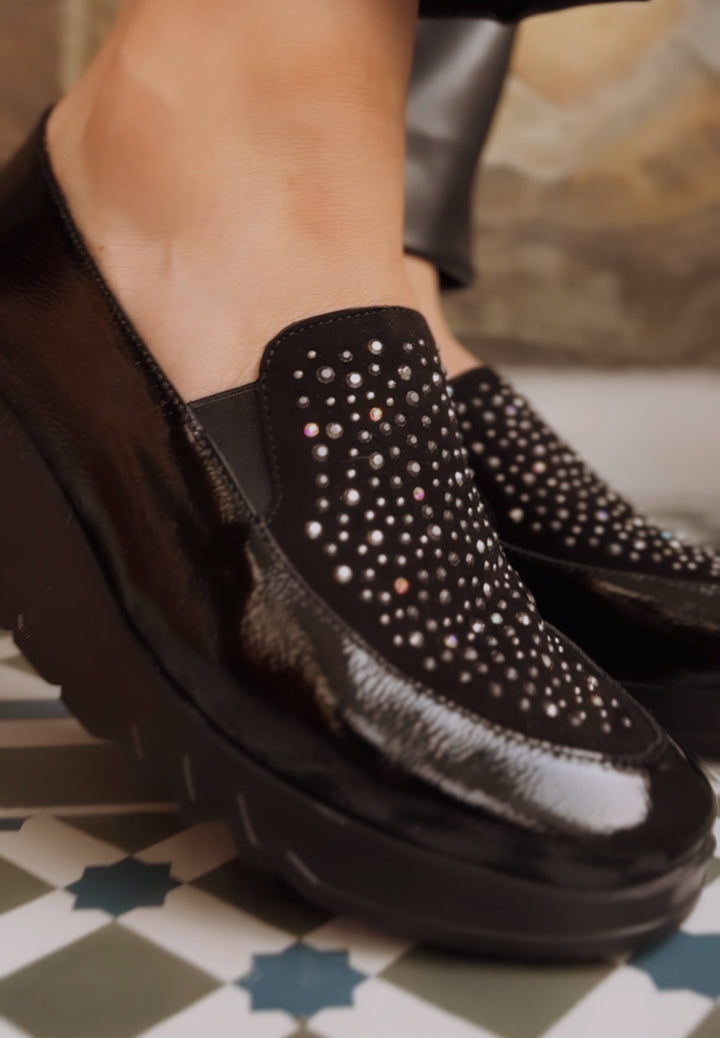 Wonders Evelyn Black & diamonte Shoe