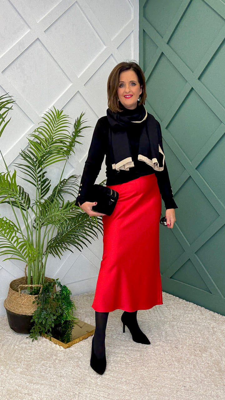 Designed with a fully elasticated waistband, it’s perfect for all-day wear – just slip it on and go! The silhouette is gently tailored, flowing into a very slight A-line shape at the hem for a flattering finish. It’s not a dramatic A-line – just enough to add grace and movement.