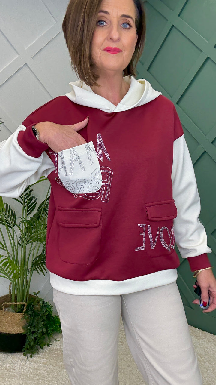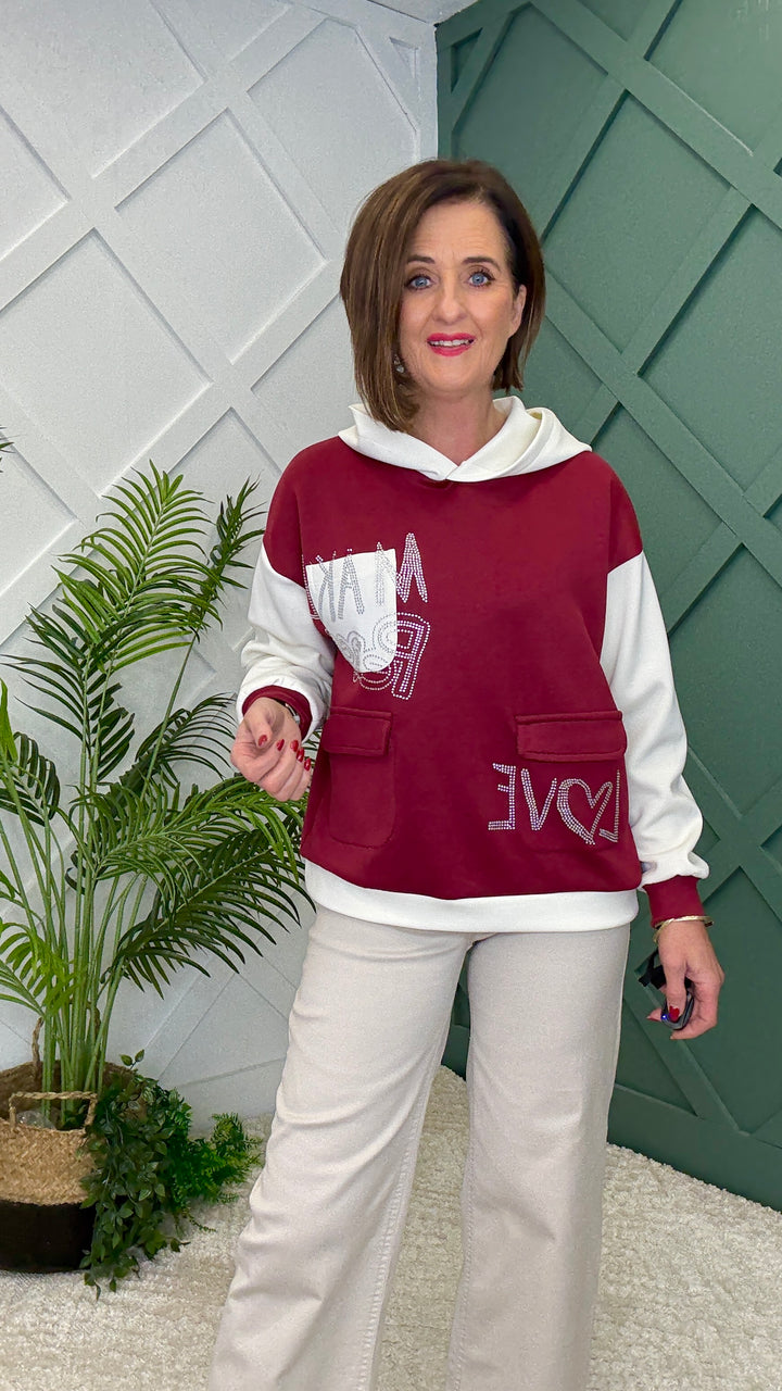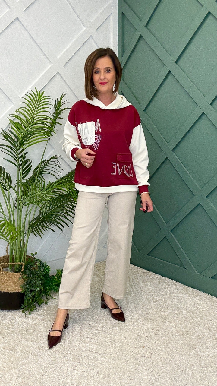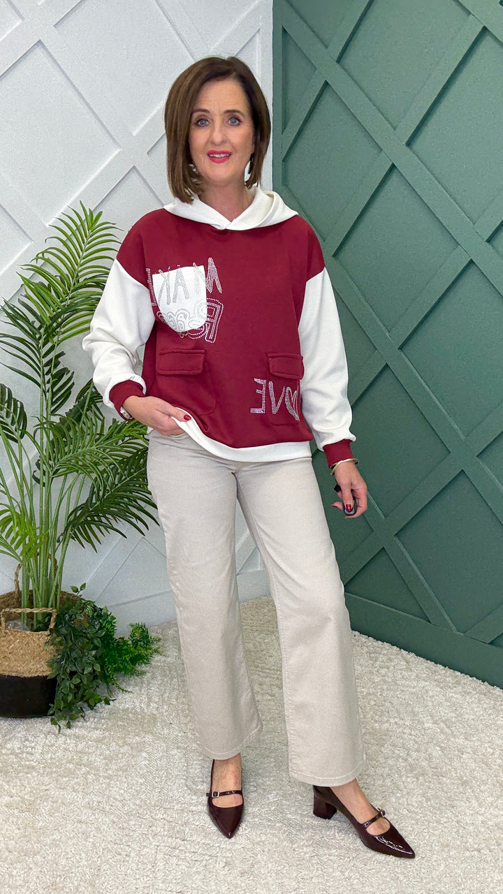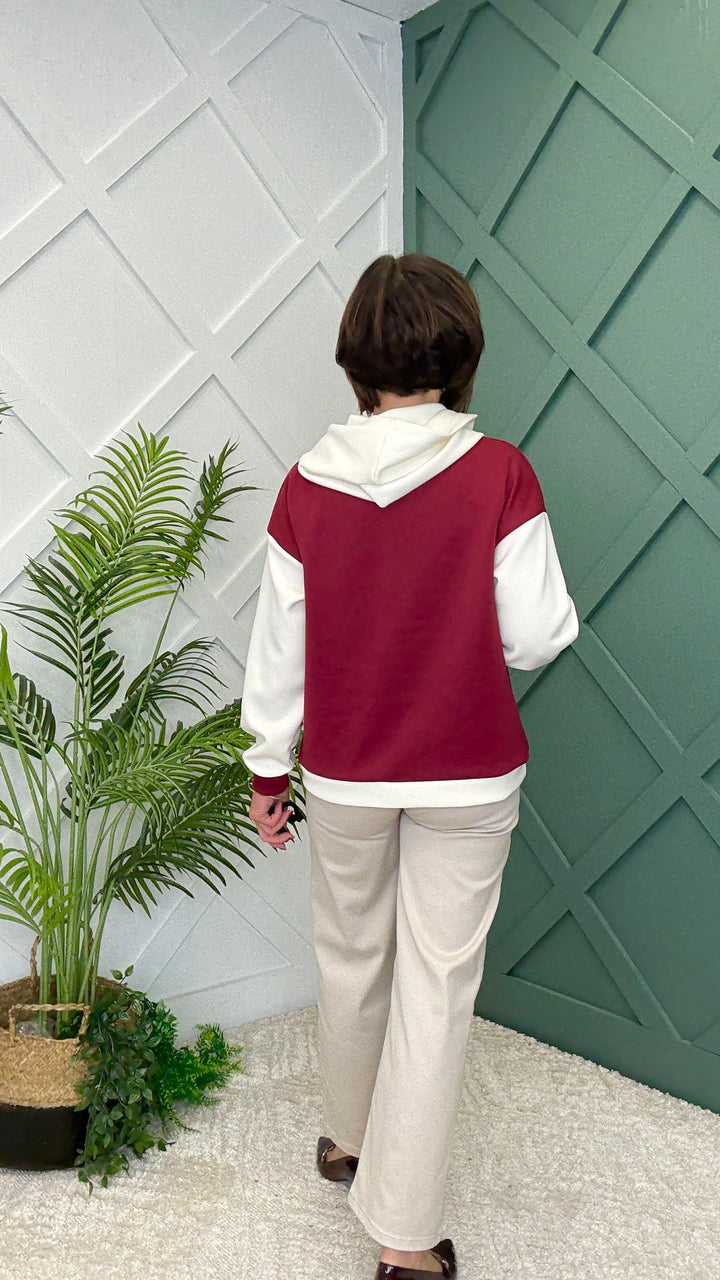 -Contrast oatmeal colour on sleeves, hood and hemline.