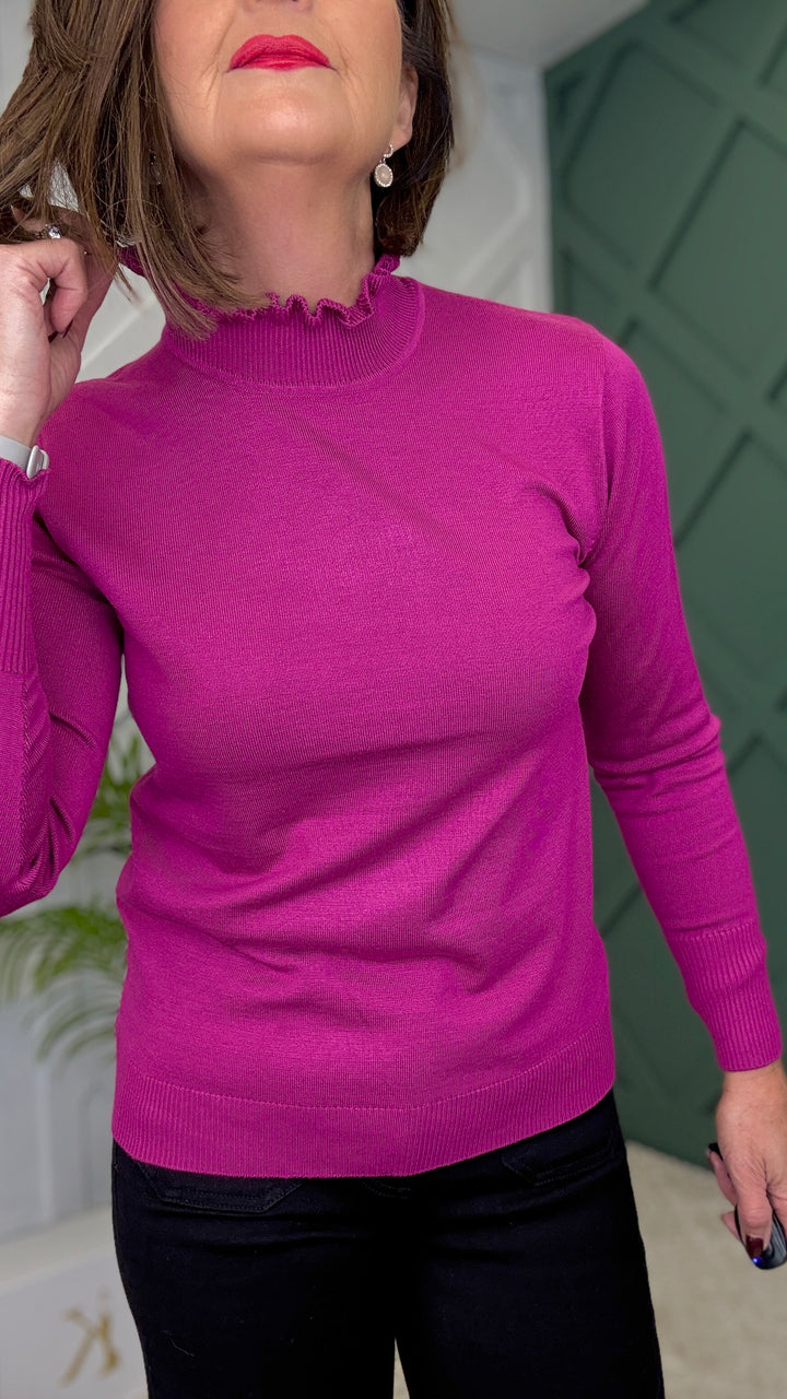 The Leah Frill Neck Top is your go-to knit for easy styling and all-day comfort this season.