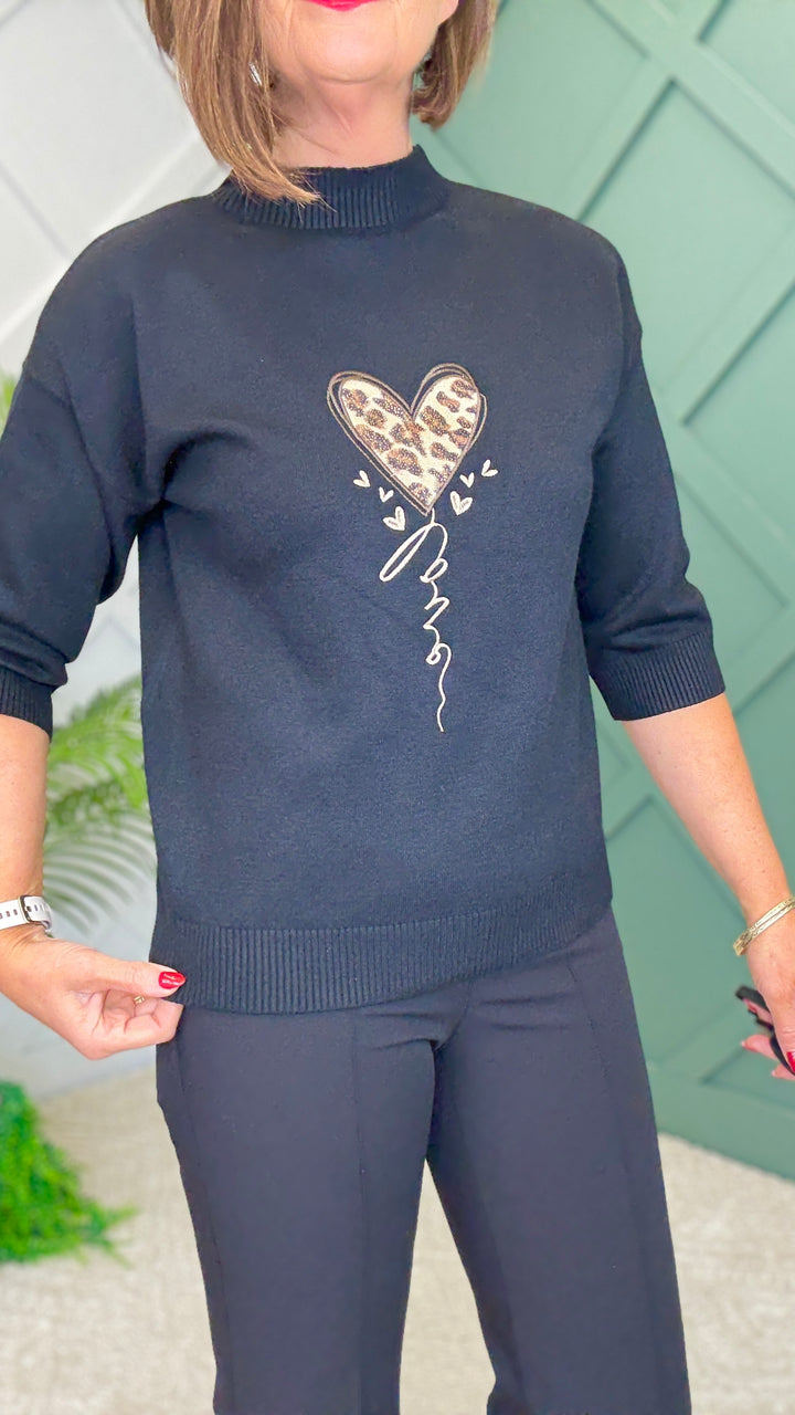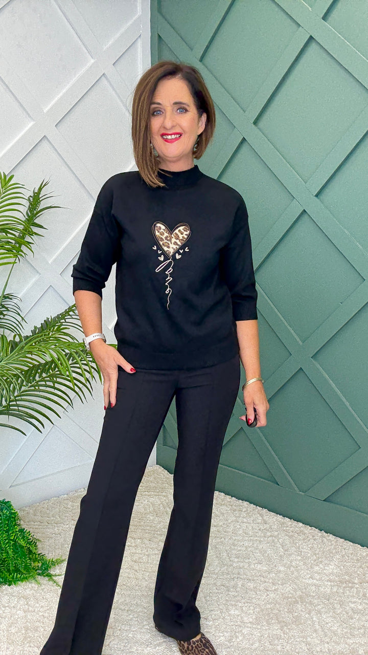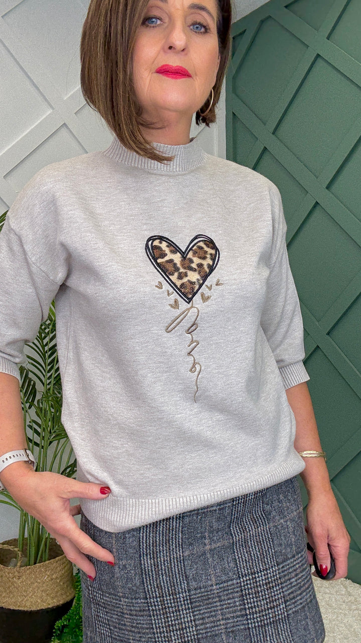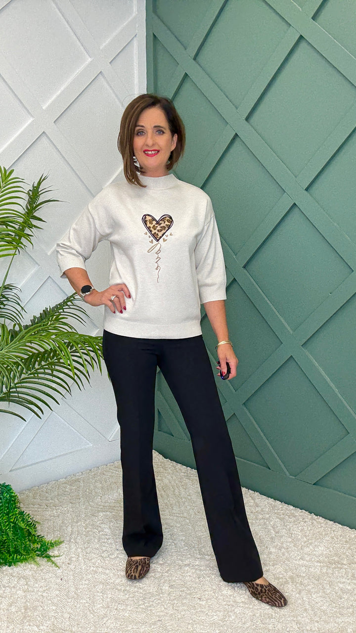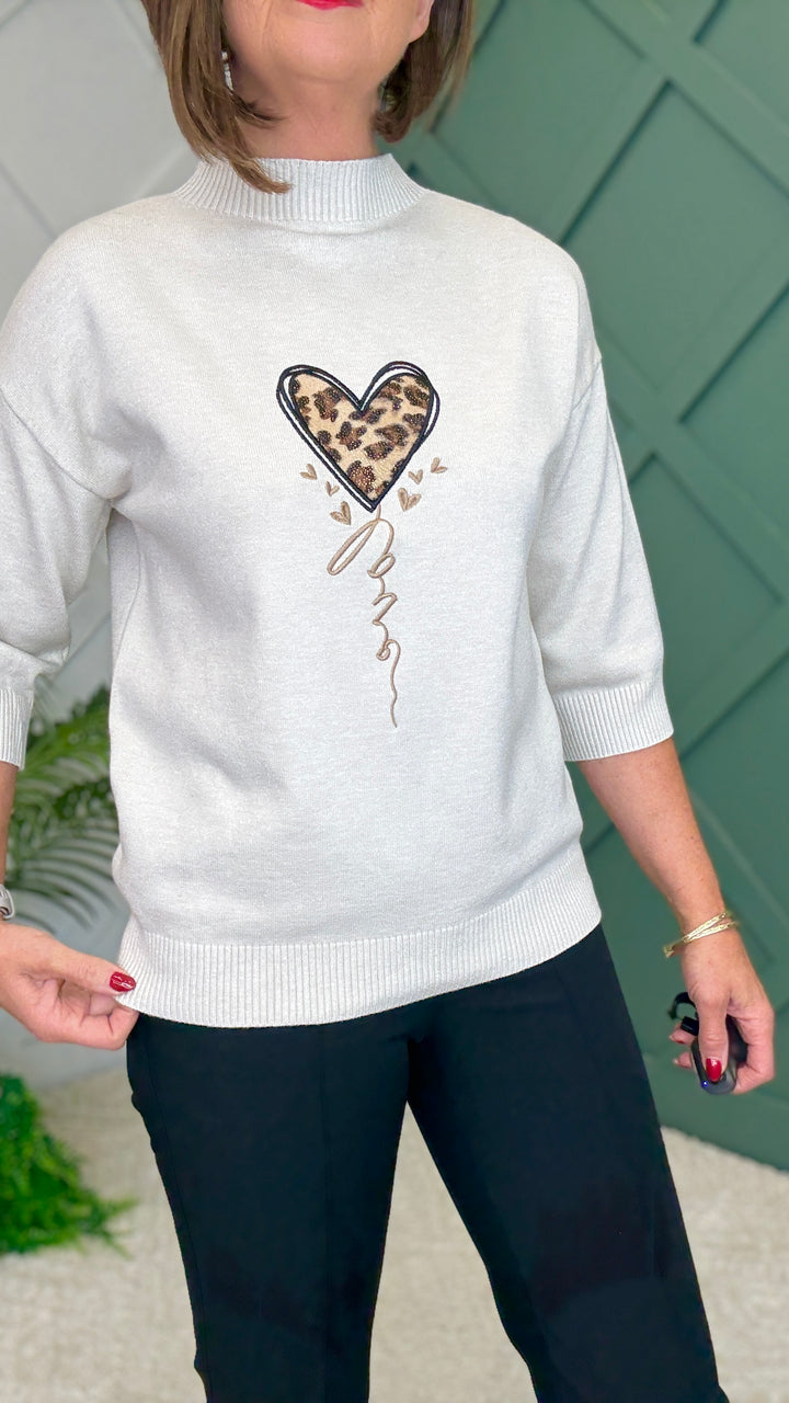 π The front showcases a statement animal print love heart with black embroidered threading, white contrast stitching on the βLOVEβ logo, and a touch of gold detail β¨ for that extra bit of glam.