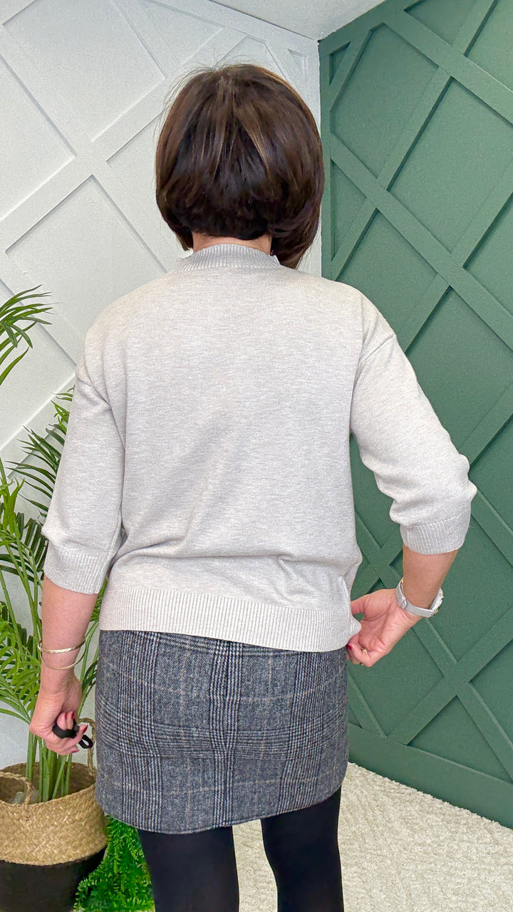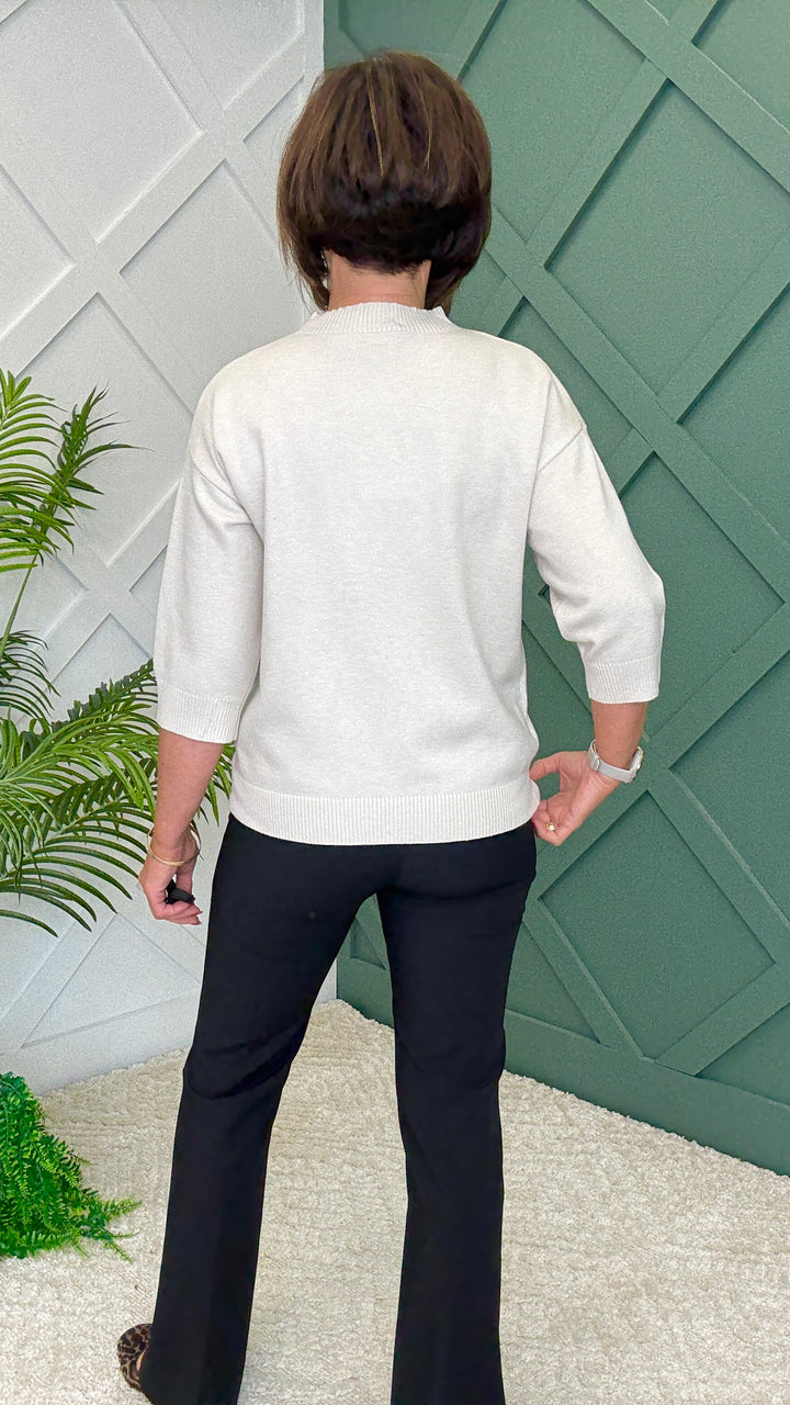 Fall in love with cozy chic vibes π€π Our Linda Knit is the perfect blend of comfort and style. Featuring a ribbed neckline with a slight turtleneck, three-quarter sleeves, and contrasting knit stitching on the neckline, cuffs, and hemline β this piece is all about the details.
