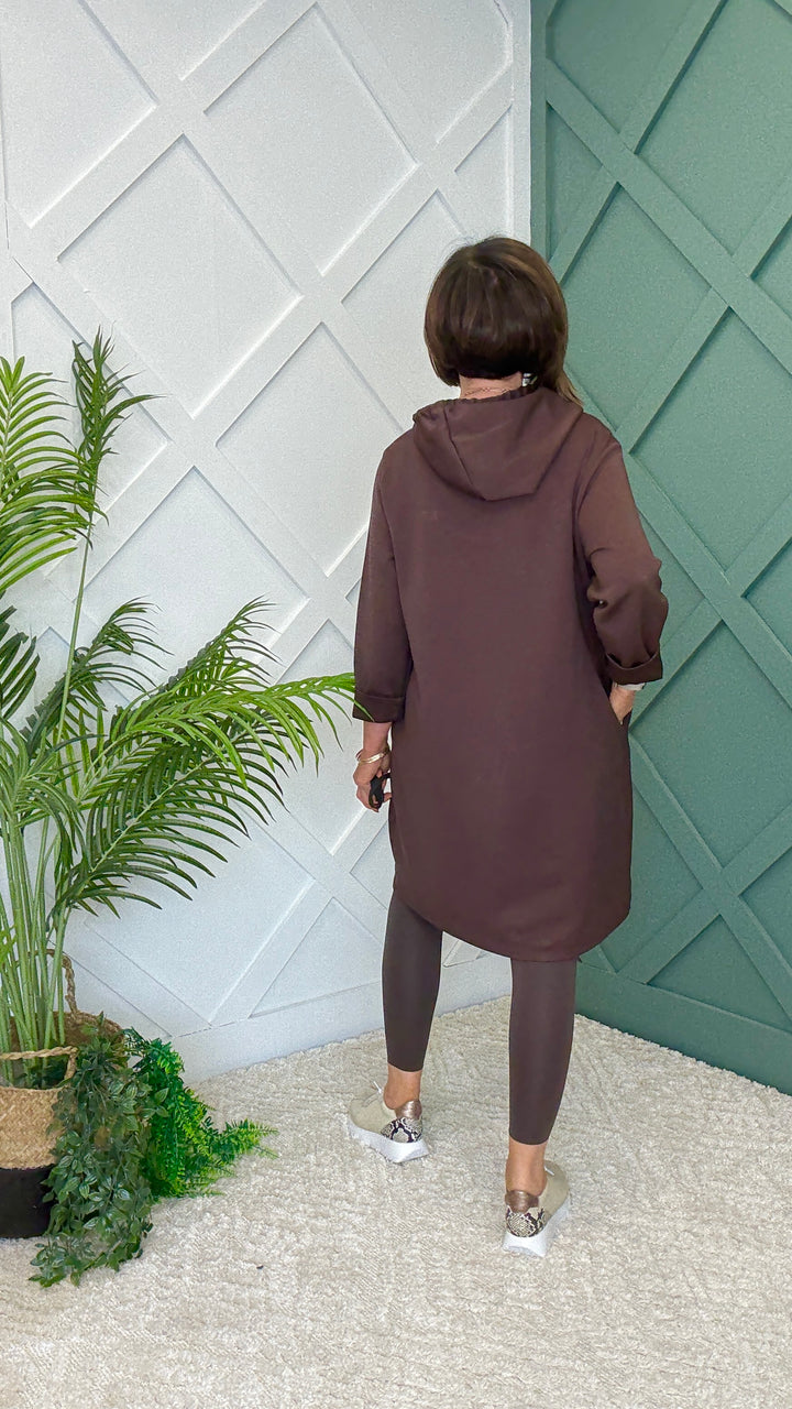 - Two-tone drawstring in brown and oatmeal for a unique accent
