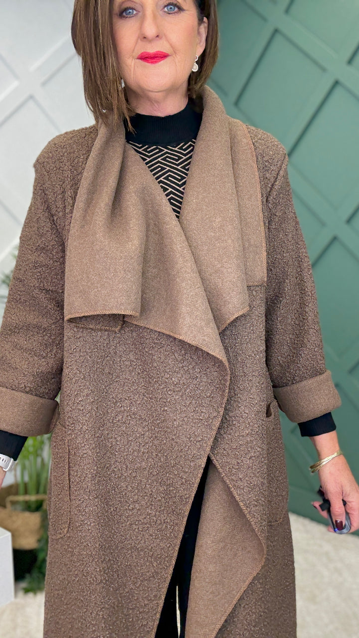 The waterfall effect creates a graceful drape, while the edge-to-edge design keeps the silhouette clean and modern. Full-length sleeves add warmth, and the two generously sized front pockets offer both functionality and relaxed charm. Finished with a subtle swing at the hemline, the Nuala Jacket moves beautifully with you, making it as versatile as it is stylish.