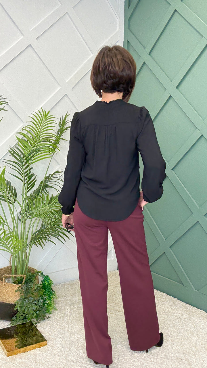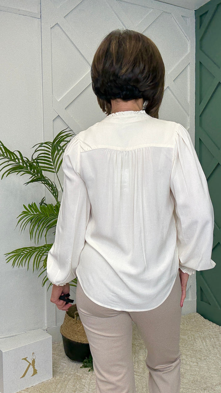 Elevate your wardrobe with the Radia Blouse, a beautifully detailed piece that blends soft femininity with timeless style.