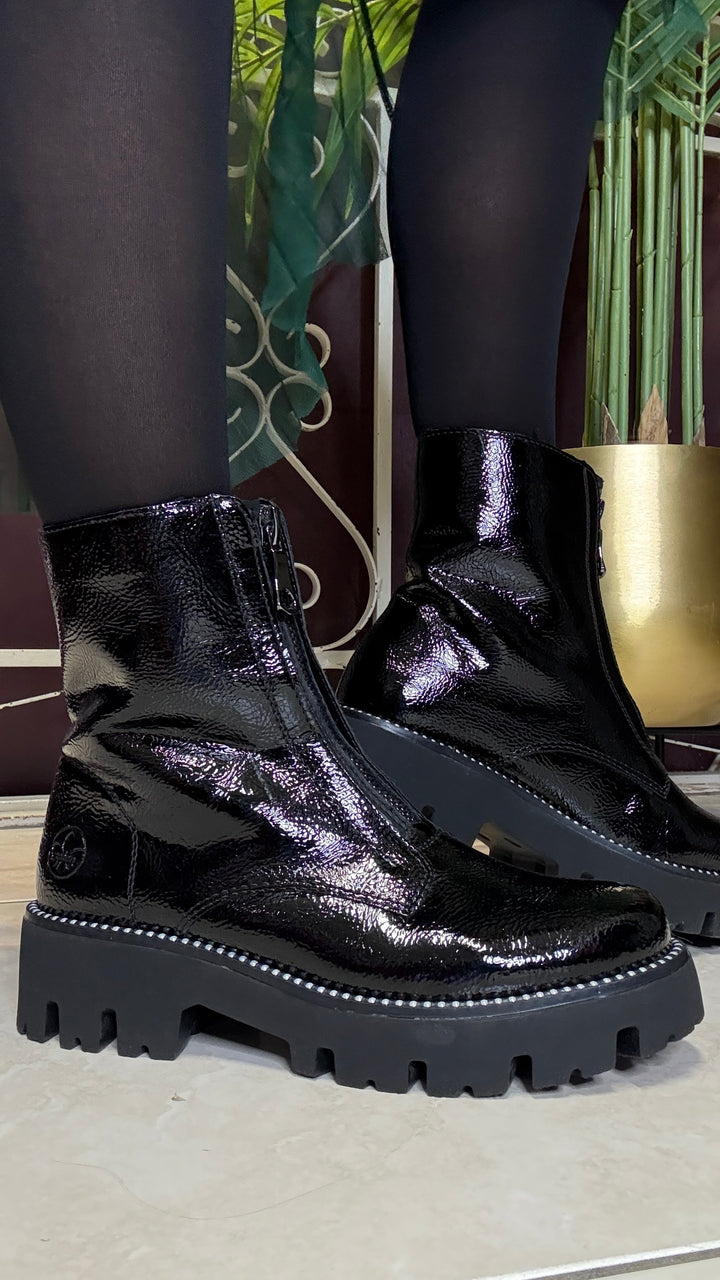Step out with confidence in our Patent Leather Style Biker Boot, designed for those who love a statement look without sacrificing comfort. Featuring a glossy patent-finish outer, this boot delivers instant attitude—perfect for elevating any outfit from casual streetwear to night-out style.