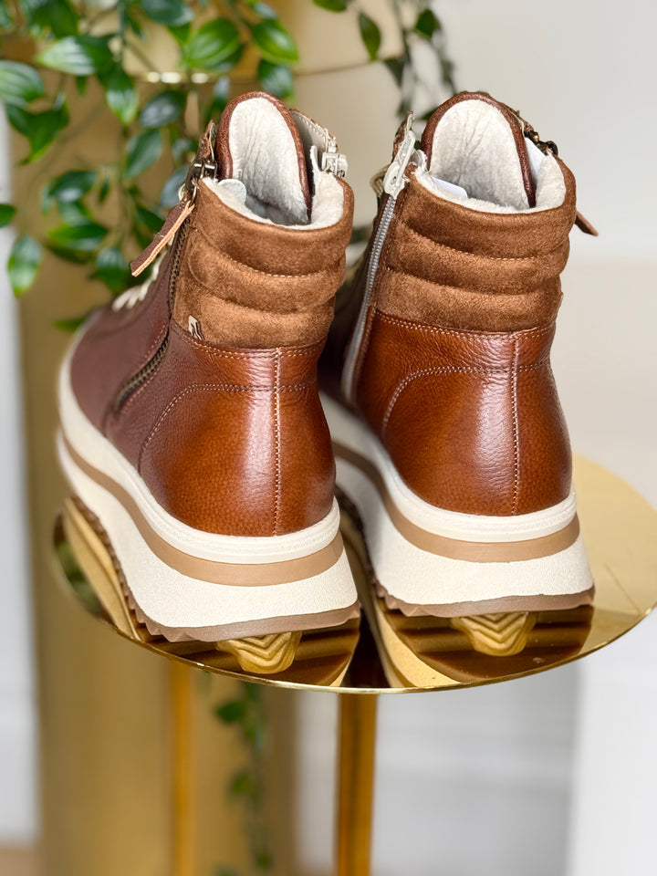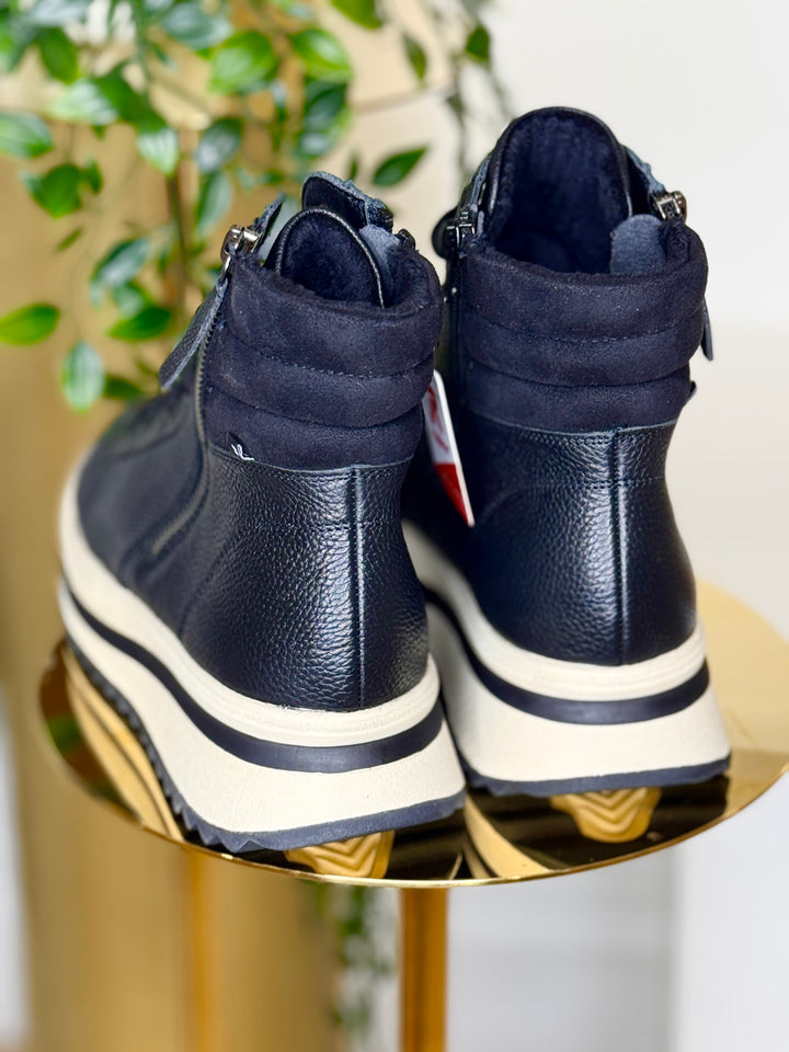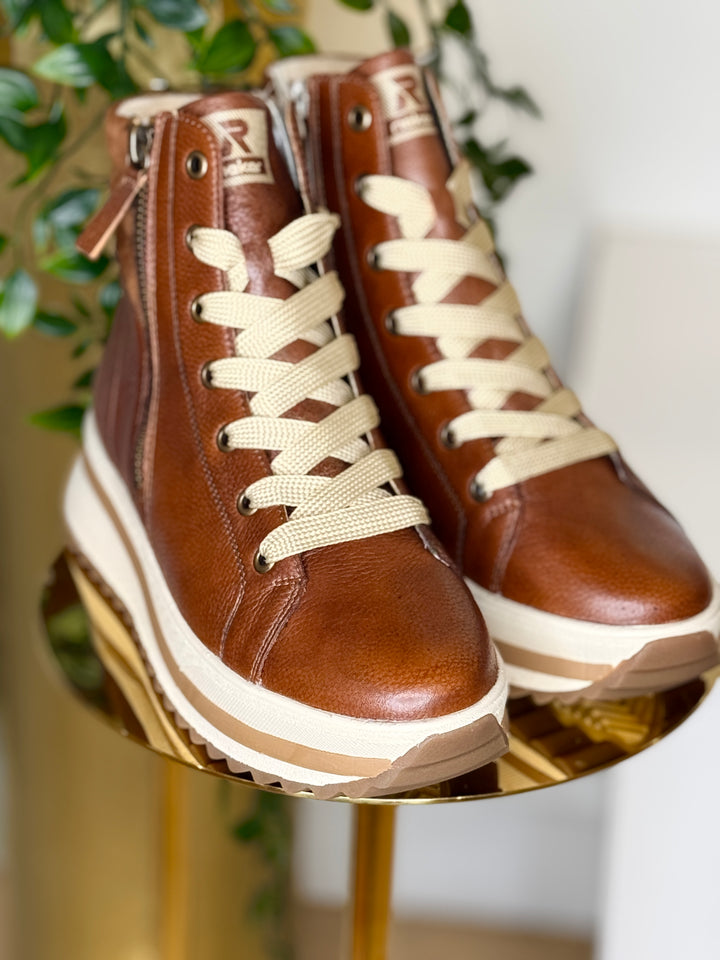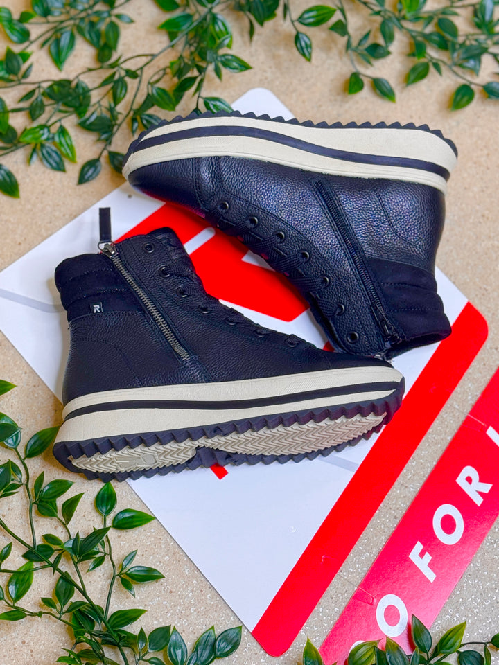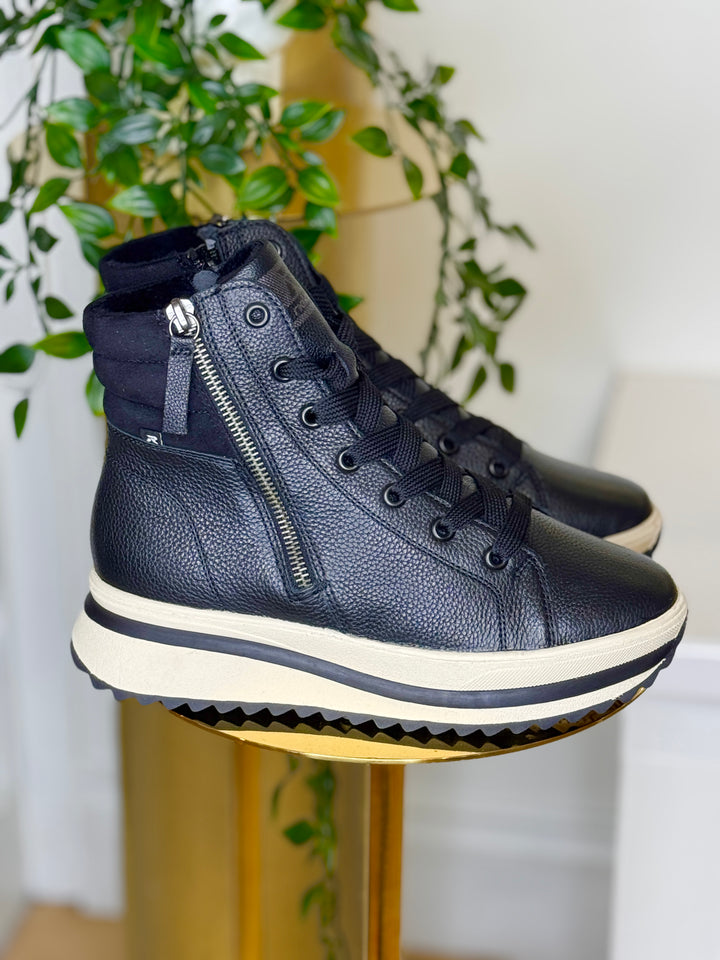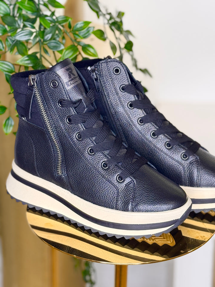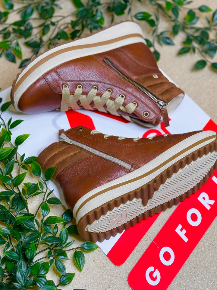 Step into effortless style and comfort with this new Riker high-top sneaker boot. Designed with premium textured leather and a contrasting platform sole, it blends sporty edge with everyday wearability. The side zipper ensures easy on-and-off convenience, while the cushioned insole keeps you comfortable all day long.