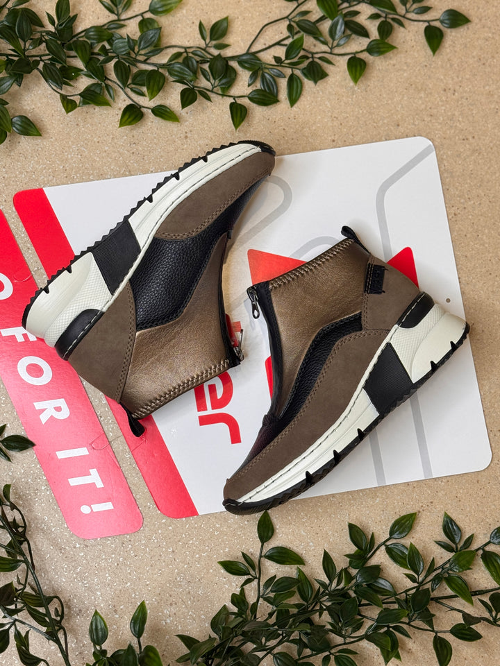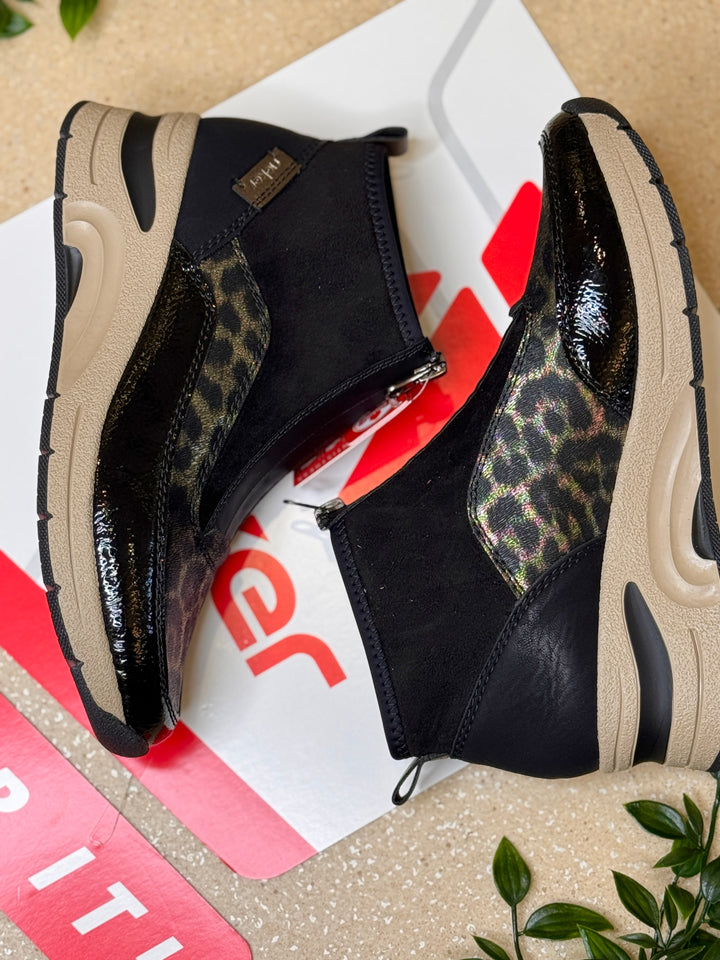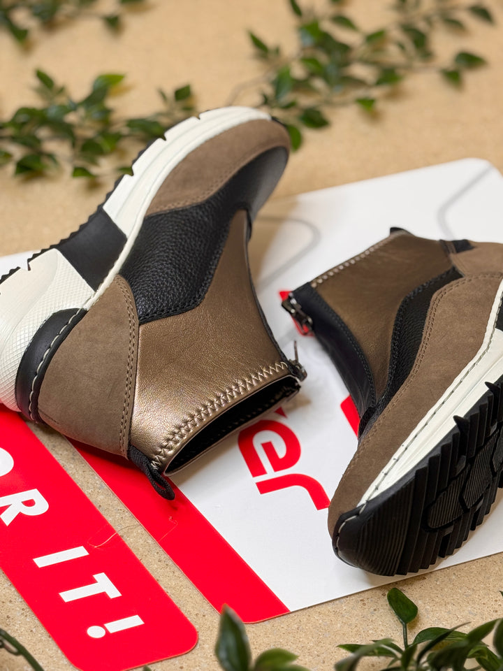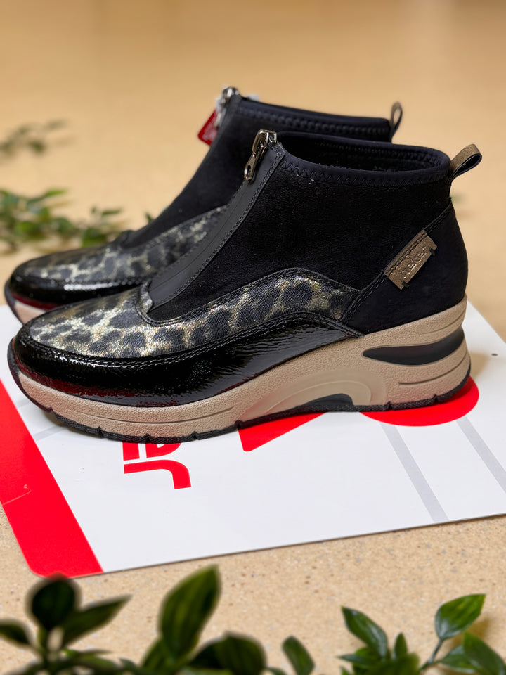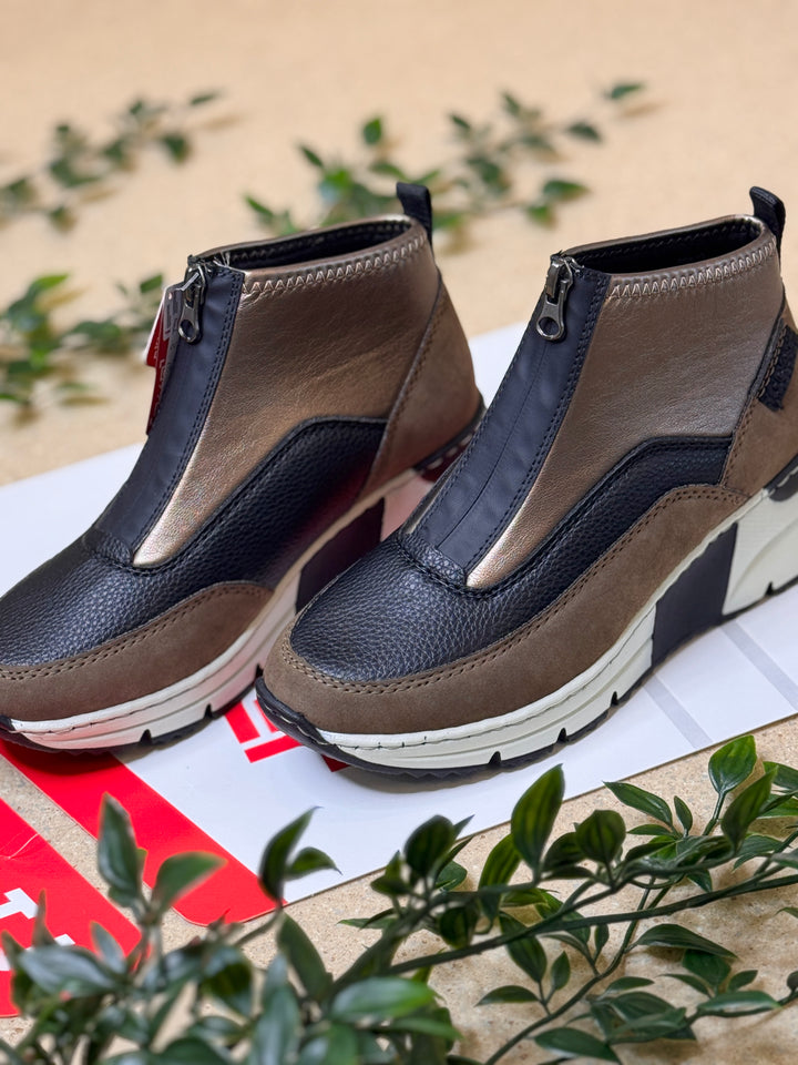 Step into comfort and contemporary style with the Rieker Sneaker Boot — a perfect blend of sporty design and everyday practicality. Available in bronze, leopard, and black, this versatile ankle boot adds a modern edge to any outfit.