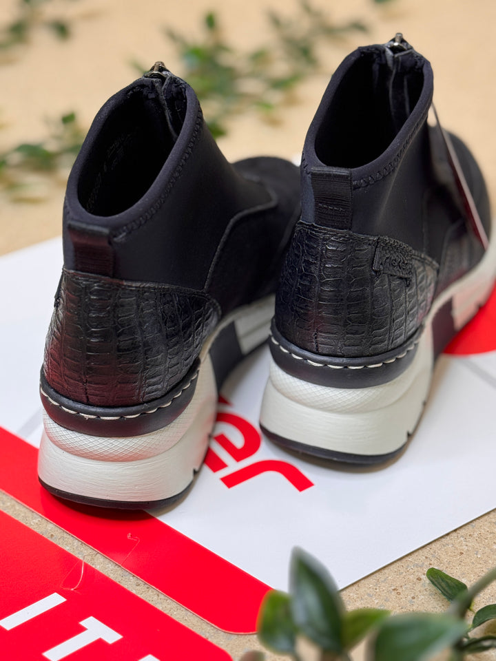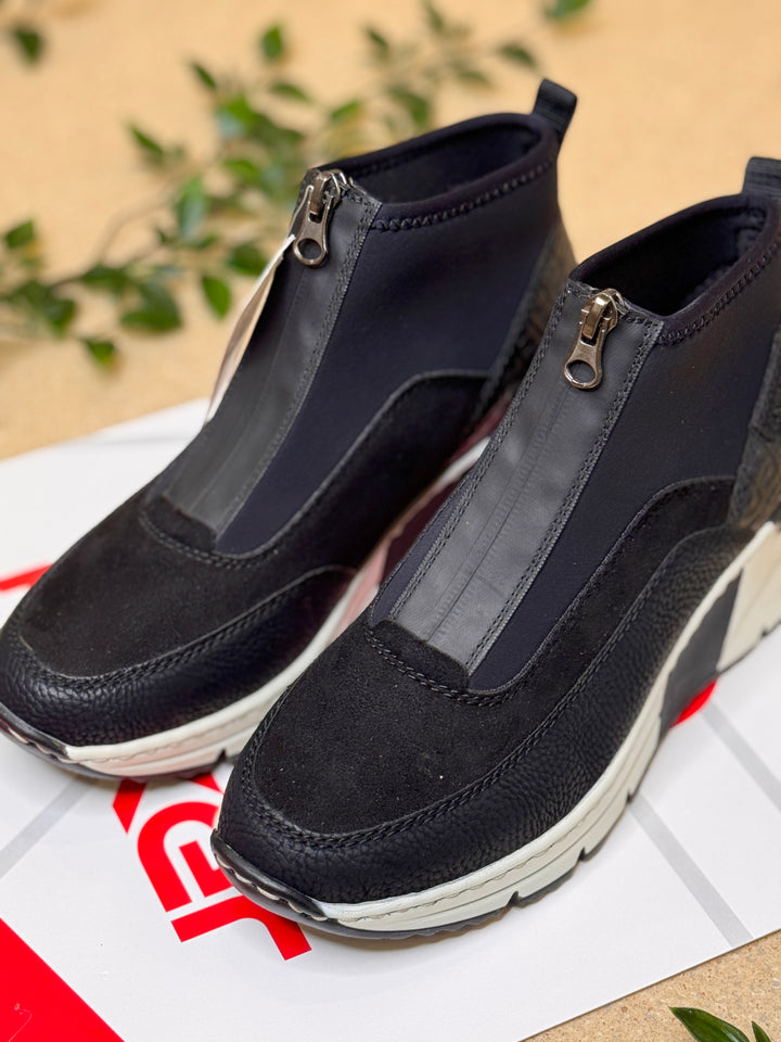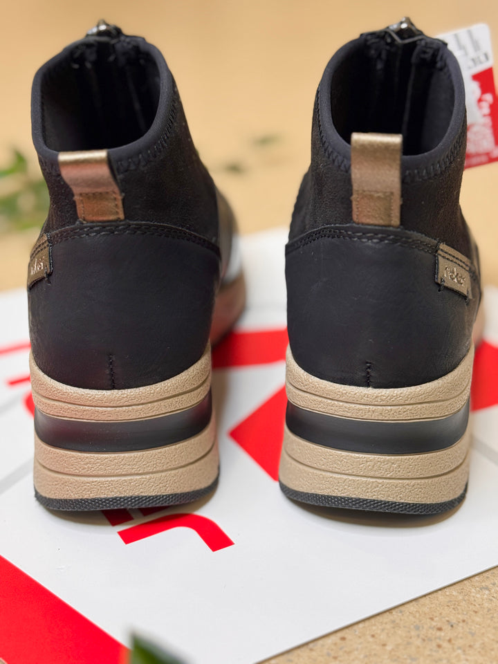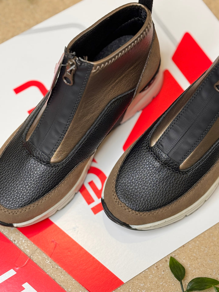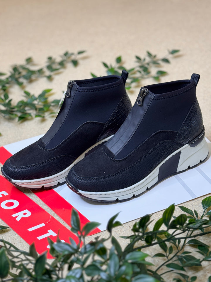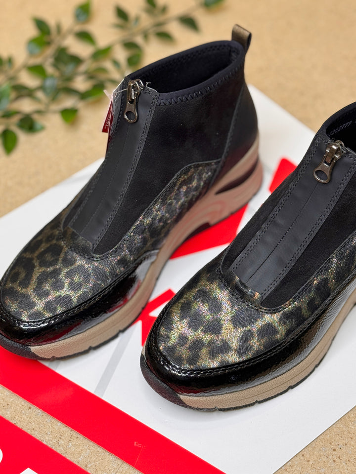 Step into comfort and contemporary style with the Rieker Sneaker Boot — a perfect blend of sporty design and everyday practicality. Available in bronze, leopard, and black, this versatile ankle boot adds a modern edge to any outfit.