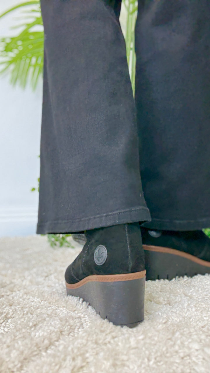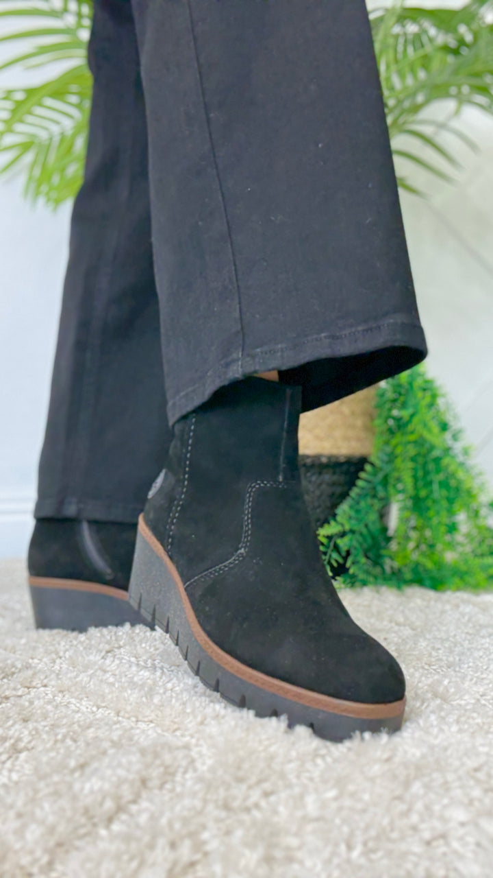 Step into effortless style and comfort with the Rieker Black Wedge Ankle Boot – a versatile must-have for your wardrobe this season.