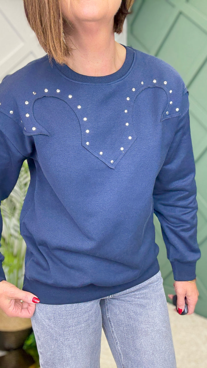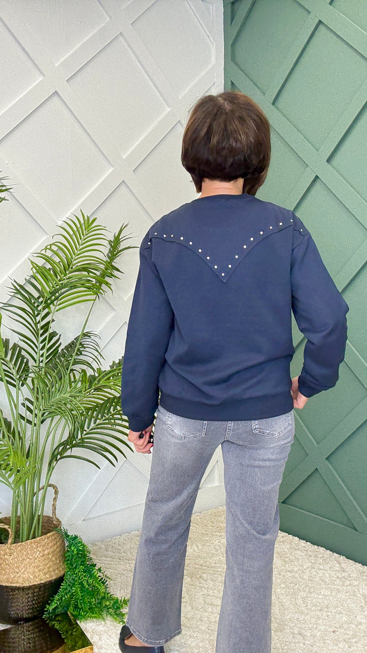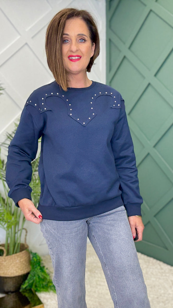 ROBI Sweater Top β Navy with Silver Stud Detailing β¨