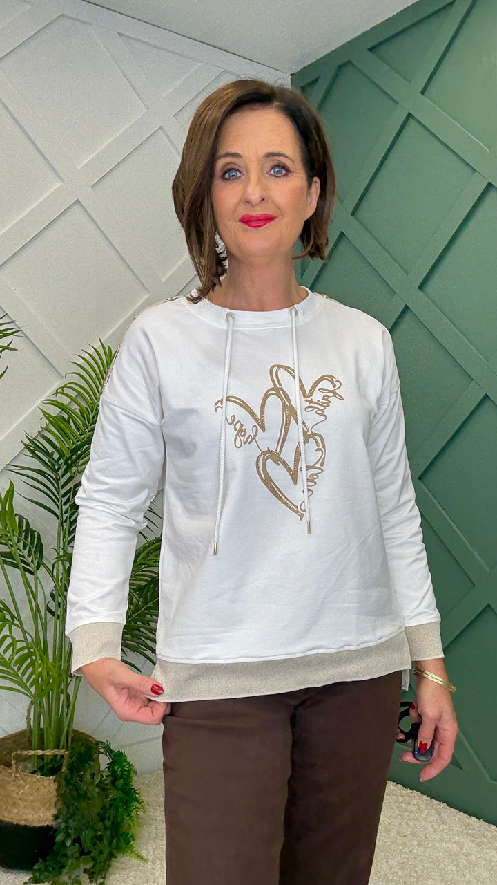 The design tells its own story with three dainty love hearts and the words “Faith" "Love” and “Hope” beautifully embroidered with tiny gold Monte details, creating a look that’s both meaningful and chic 💛