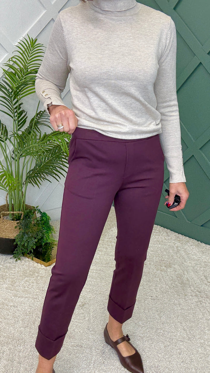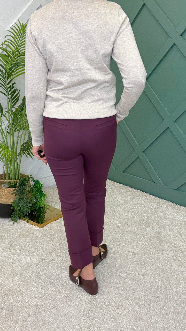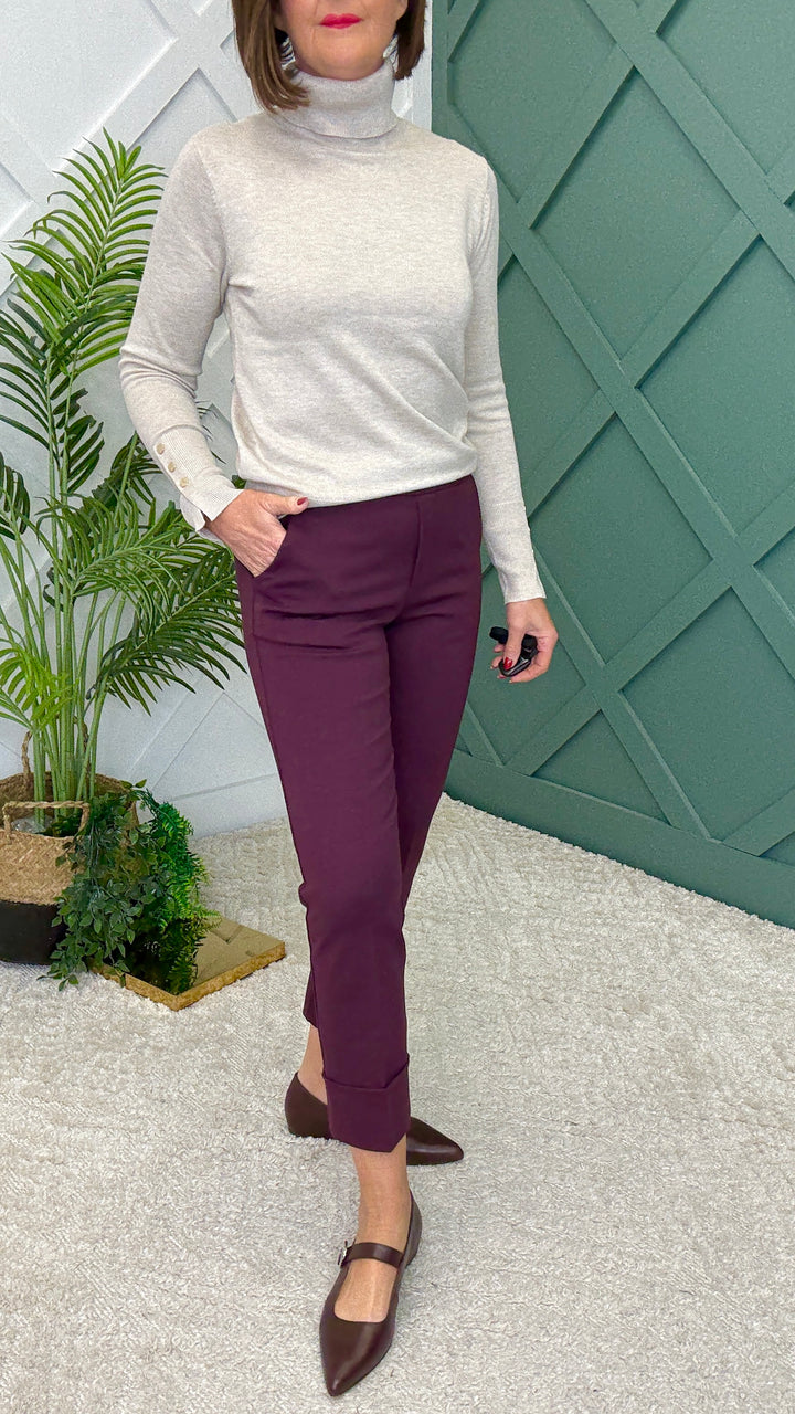 Pull on elasticated waist trousers with turn up detail.