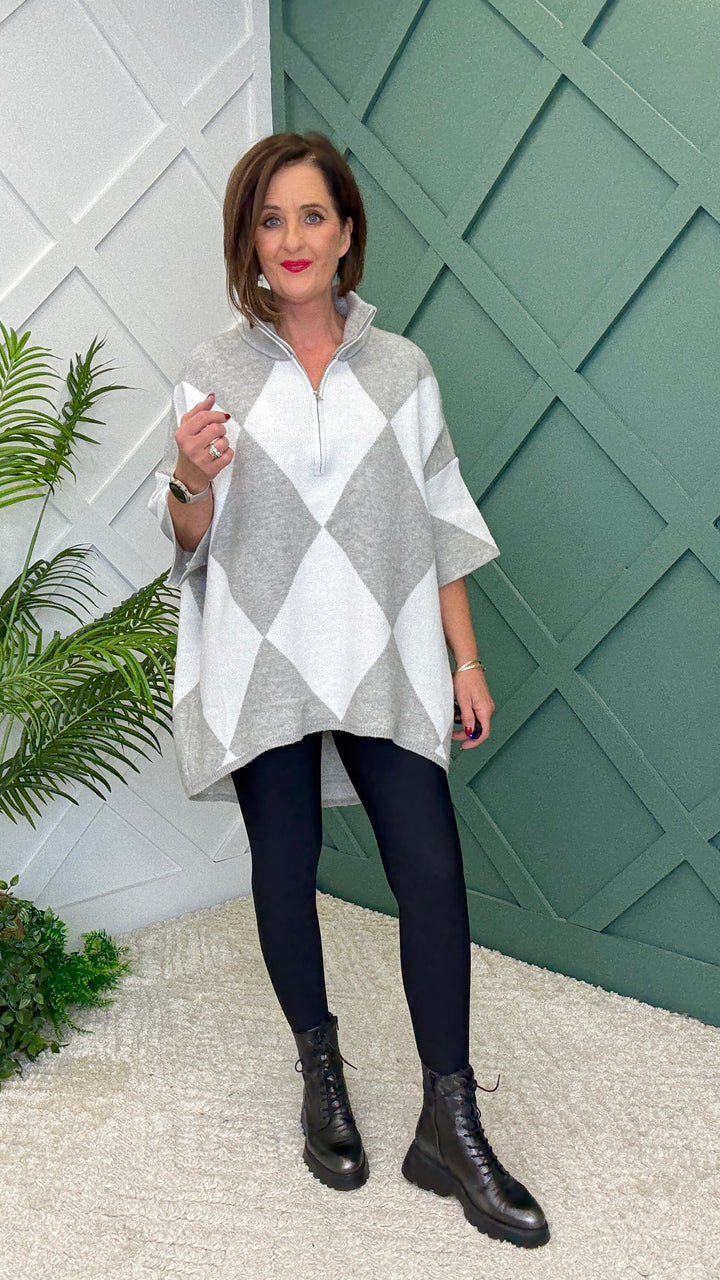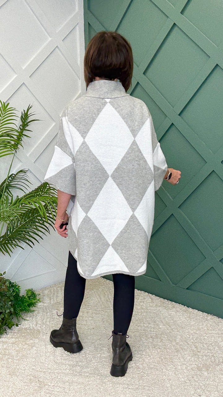 Chic, cozy, and effortlessly flattering—our Harlequin Knit Tunic is your new go-to. With its bold diamond design, dipped hem (longer in back, shorter in front), and a length that pairs perfectly with A-tier shapewear leggings, it’s equal parts style and comfort.
