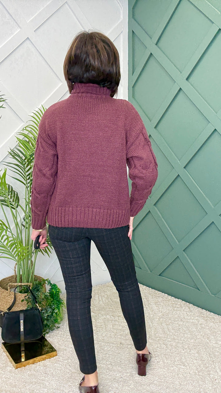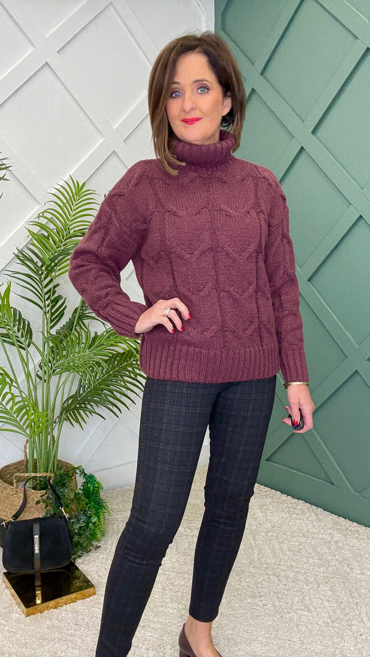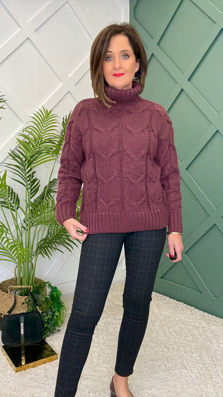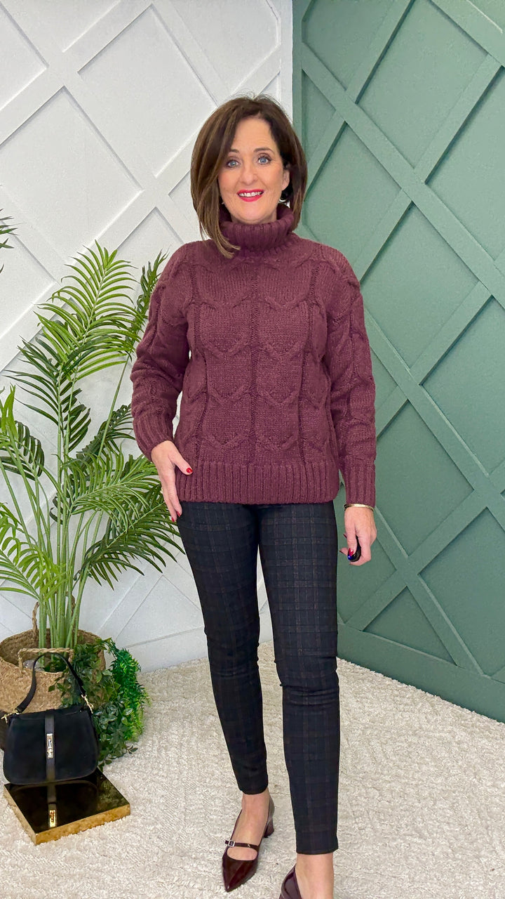 Our beautiful Tarja polo neck is ideal for these autumnal days, it has a lovely ribbed neck on it and an embossed knit pattern on the front with a plain back. This knit will be beautiful over a skirt and long boots or over jeans. It is a very versatile knit.