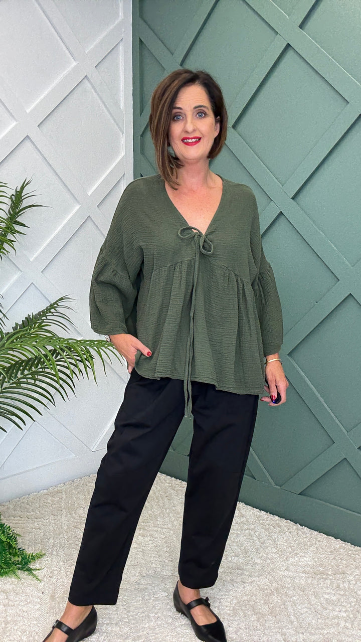 Meet your new wardrobe favorite – the Thomasina Top, where comfort meets effortless style.