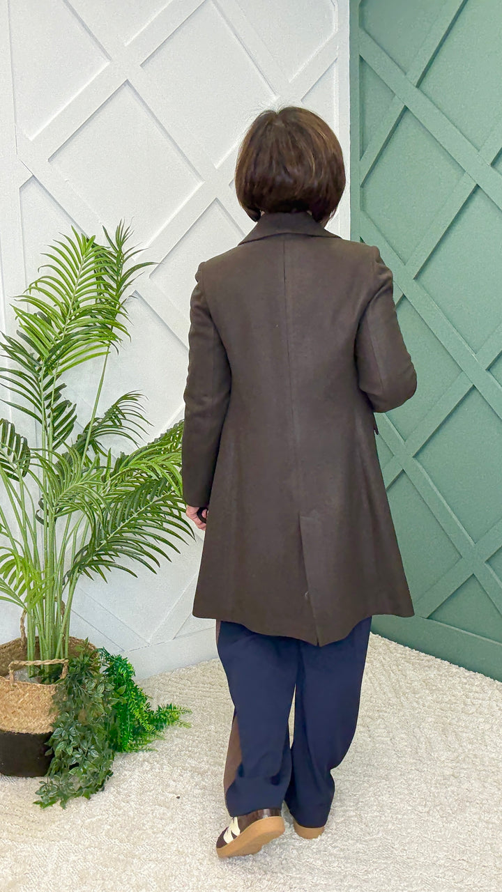 Meet the Veronica Coat — a timeless, structured piece that blends elegance with everyday wearability. Designed with thoughtful tailoring and finished in a rich chocolate, it’s the coat that carries you from day to evening in style.